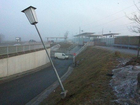 Die Straßenlaterne wurde aus ihrem Fundament gekippt
