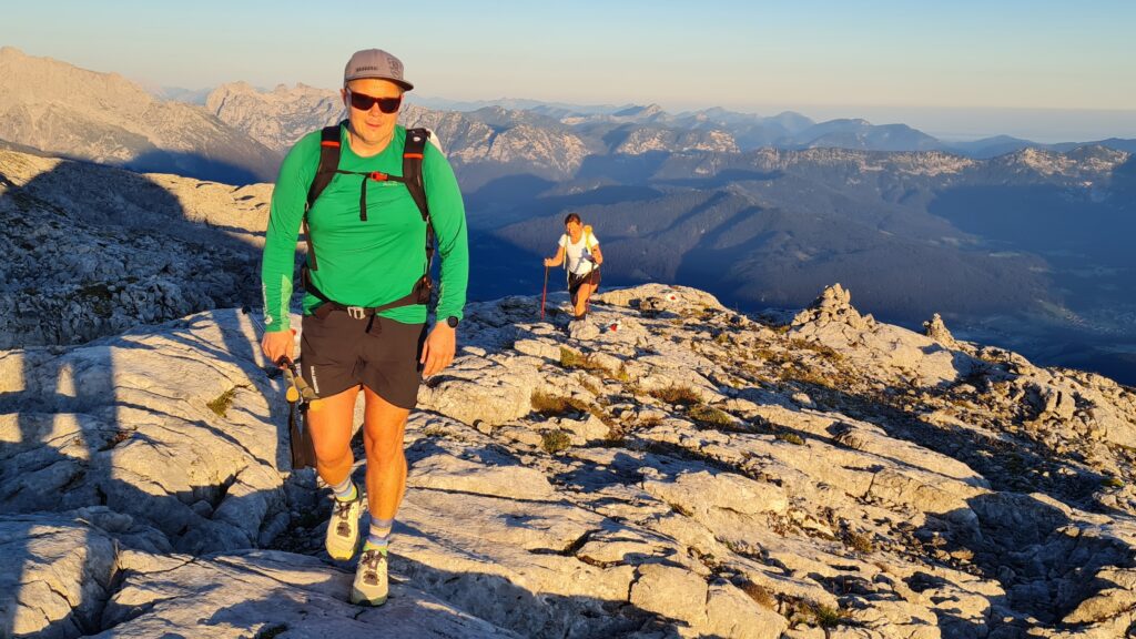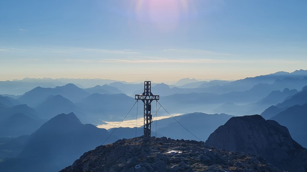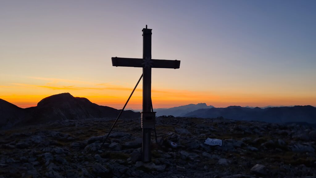 Unser Alpinreferent Roland Gerl bei der AV Sektion Kuchl hatte Anfang 2024 die Idee, im Rahmen einer Sektionstour unseren Heimatort Kuchl von West nach Ost zu durchqueren: Die Bezeichnung der Wanderung war dann auch folgerichtig „Trans Cucullus“. Es folgte eine intensive Planungsphase mit dem Organisationsteam. Und am 7. September 2024 sollte dann die Wanderung vom Carl-von-Stahlhaus über den Hohen Göll hinunter zum Eggersattel und über die Nesslangeralm nach Kuchl führen. Von dort ging es weiter über Grubach und die Gitschenwand zur Enzianhütte am Trattberg: eine Wanderung von fast 30km Länge und einer Höhendifferenz von 2.200 Höhenmetern.
